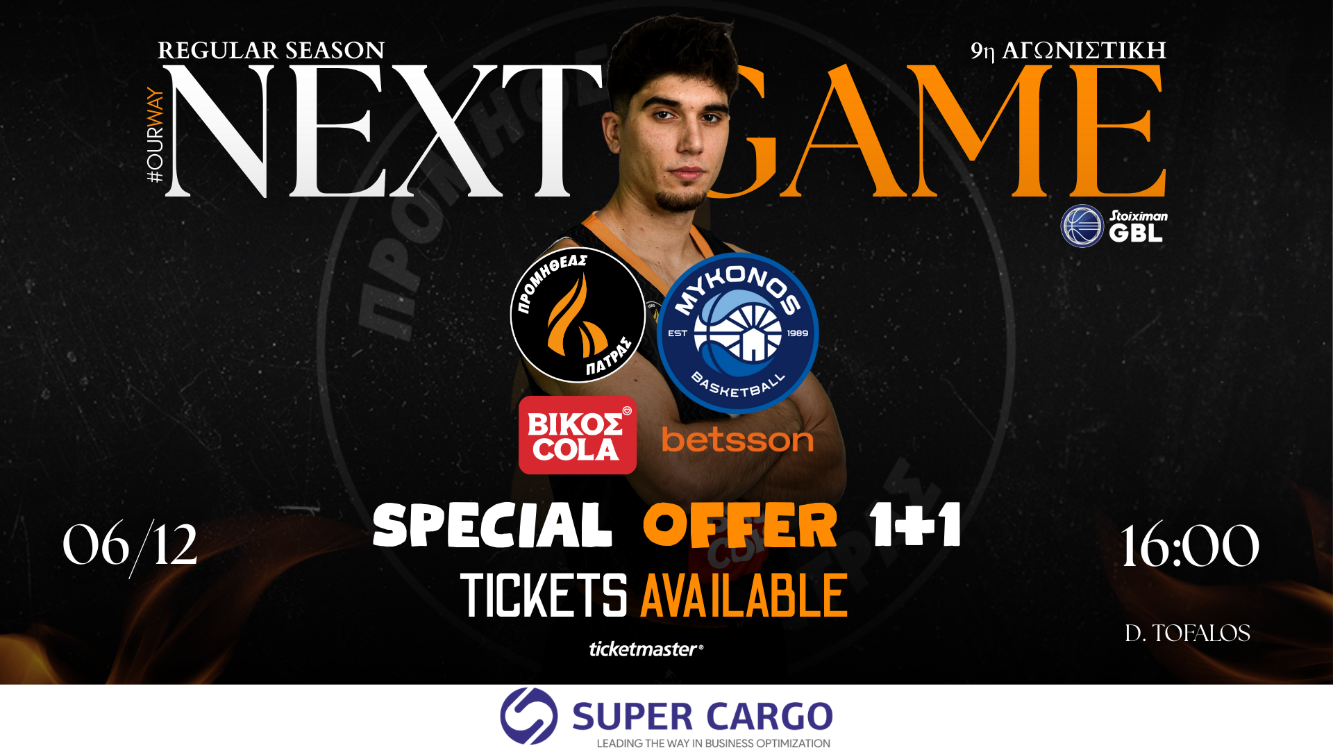 Η Stoiximan GBL επιστρέφει και ο Προμηθέας Βίκος Cola ετοιμάζεται να φιλοξενήσει στο Δ. Τόφαλος την Μύκονο Betsson για την ένατη αγωνιστική του πρωταθλήματος, με το τζάμπολ του αγώνα να έχει οριστεί για το Σάββατο 6 Δεκεμβρίου και ώρα 16:00.