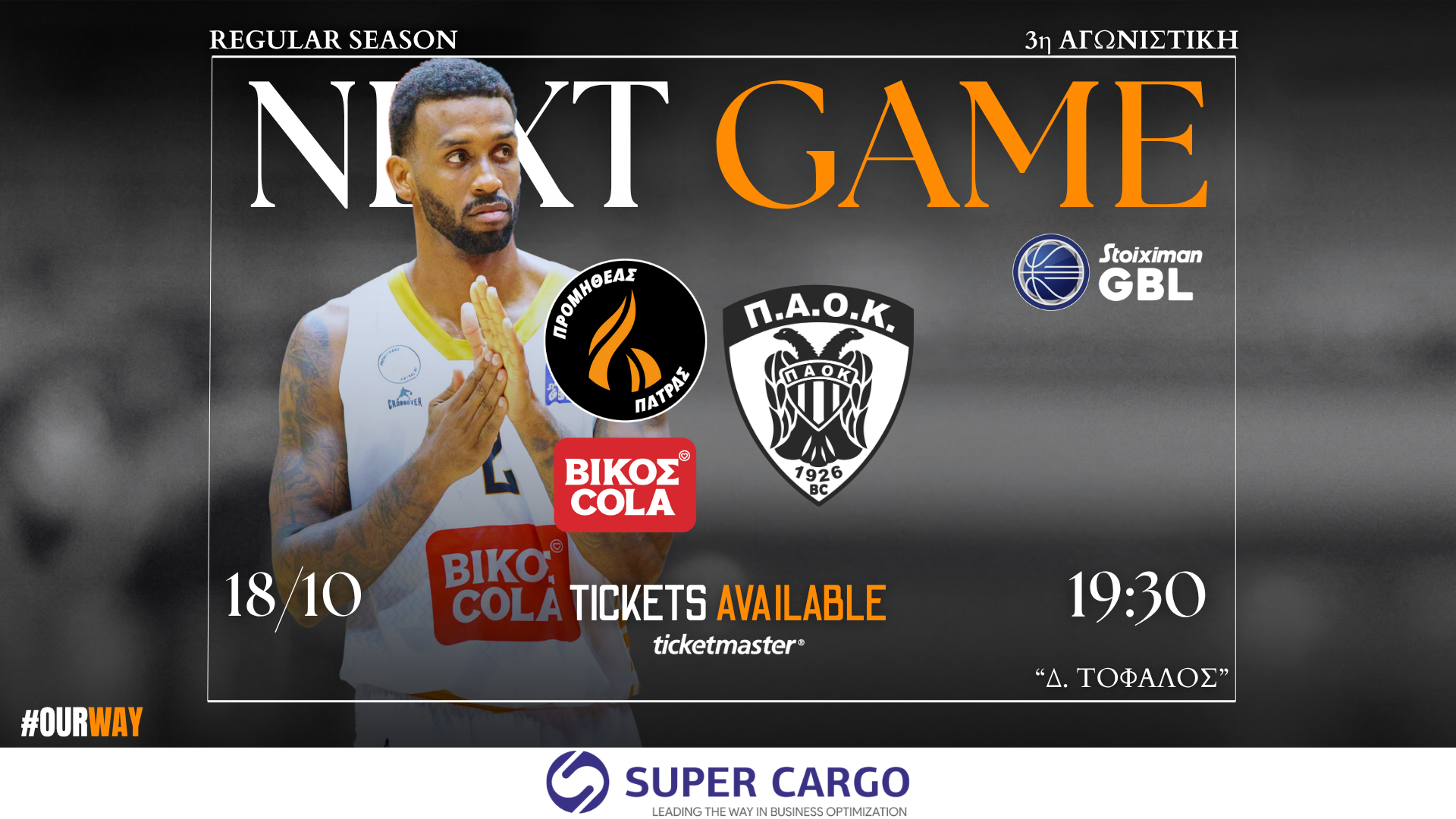 Ο Προμηθέας Βίκος Cola θα φιλοξενήσει στο Δ. Τόφαλος τον ΠΑΟΚ για την δεύτερη αγωνιστική του πρωταθλήματος της Stoiximan GBL, με το τζάμπολ του αγώνα να έχει οριστεί για το Σάββατο 18 Οκτωβρίου και ώρα 19:30.