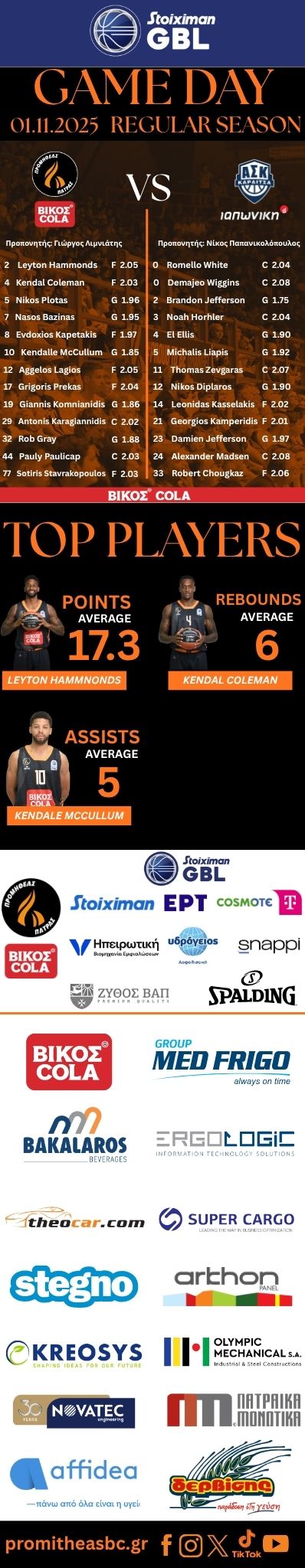 | 01/11/2025 | 18:15 | Stoiximan GBL | 2025-2026 | 5η Αγωνιστική |