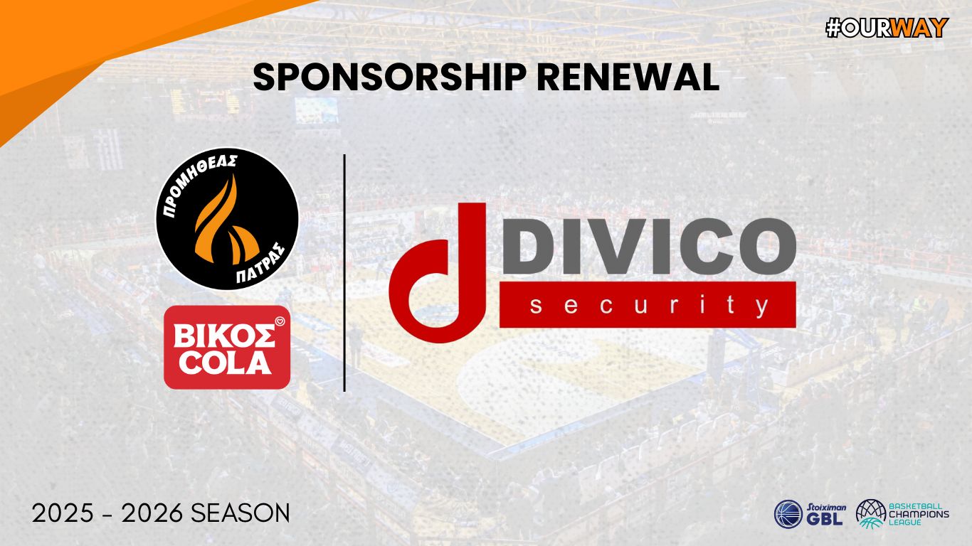 Ο Προμηθέας Βίκος Cola ανακοινώνει με χαρά την ανανέωση της χορηγικής του συνεργασίας με την Divico Security, η οποία θα σταθεί και πάλι αρωγός στις προσπάθειες της ομάδας μας για τη αγωνιστική περίοδο 2025-26.