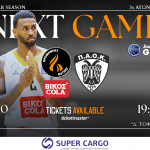 Το παιχνίδι άρχισε με τον Προμηθέα να μπαίνει νωθρά στο ματς, με την άμυνα των φιλοξενούμενων να παίρνει…χαμηλό βαθμό στα πρώτα λεπτά. Franke και Τσιακμάς έβαλαν τα σουτ από την περιφέρεια, οι ψηλοί του ΠΑΟΚ κυριάρχησαν μέσα στη ρακέτα και οι Θεσσαλονικείς προηγήθηκαν με 6 πόντους διαφορά (19-13, στο 8′). Η είσοδος του Conditt έδωσε «πνοή» στους «Αχαιούς» και με αυτόν να γίνεται σημείο αναφοράς, οι «Προμηθείς» μείωσαν στο τέλος της Α’ περιόδου (23-21). Στο Β’ δεκάλεπτο, με πρωταγωνιστή τον Franke, ο οποίος ηγήθηκε στον τομέα του σκοραρίσματος, ο ΠΑΟΚ βρήκε ρυθμό και έφτασε σε διψήφιες διαφορές (46-30, στο 17′). Η αντίδραση για τον Προμηθέα ήρθε στο τελευταίο δίλεπτο, με τον Thomasson και τον Μουρατό να «ξεκλειδώνουν» την άμυνα των γηπεδούχων με τα περιφερειακά τους σουτ και τους φιλοξενούμενους να μειώνουν στους 5 πριν την ανάπαυλα (47-42).